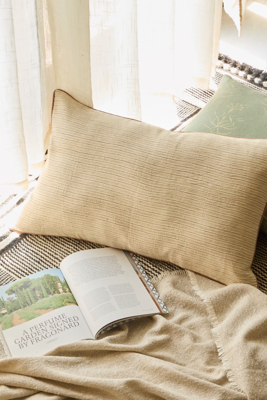 Inspired by untamed gardens and sunlit mornings, the Wild Meadow cushion features delicate hand block printed botanicals in soft yellow on a calming sage green base. Its subtle charm and artisanal texture bring a sense of peace and nature into any room.